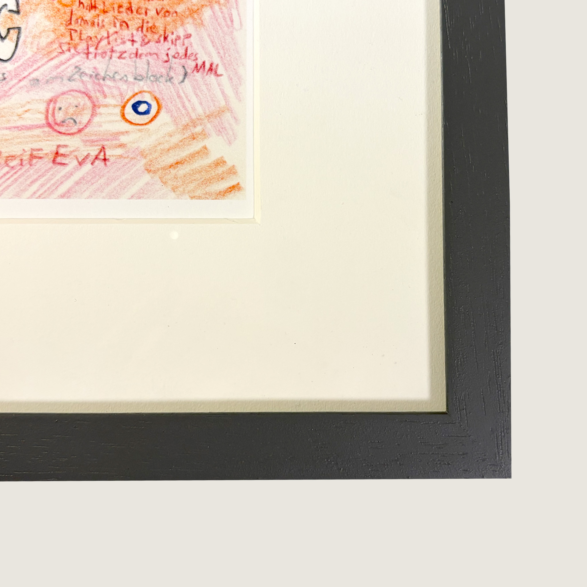 Rahmung: 30 × 24 cm, mit Passepartout und Rahmen in Anthrazit.